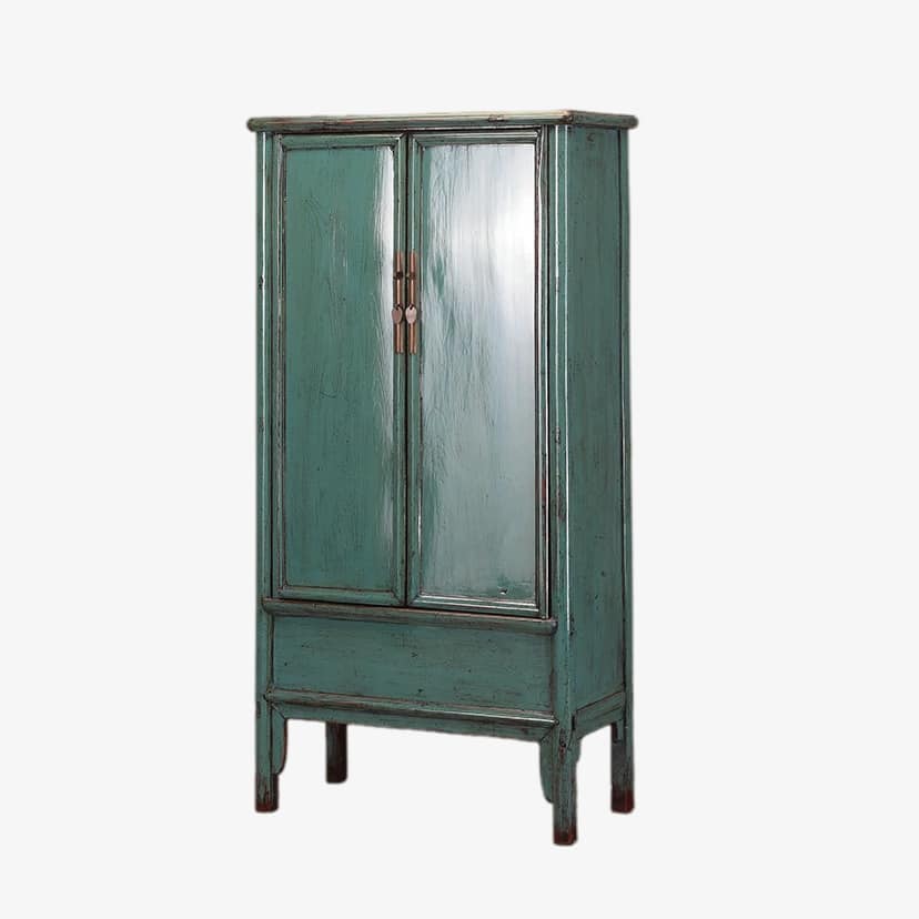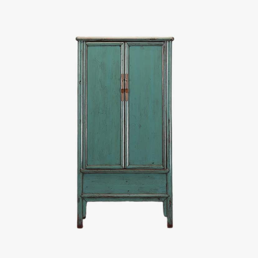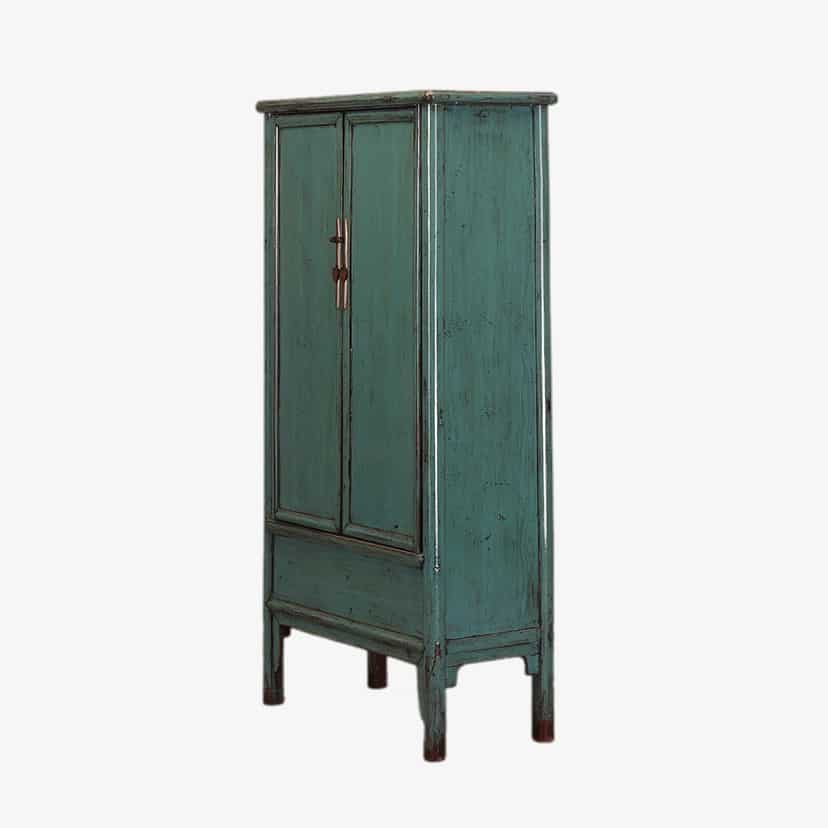 Armoire pagode chinoise, laque bleue à l’ancienne du Shandong