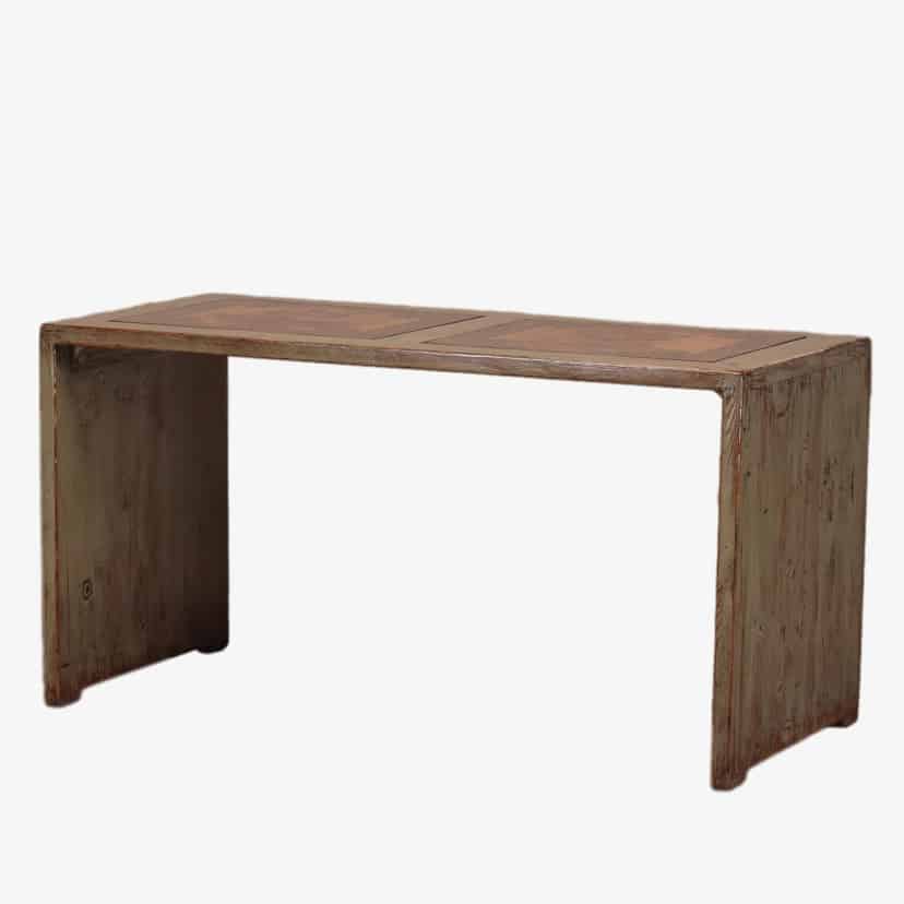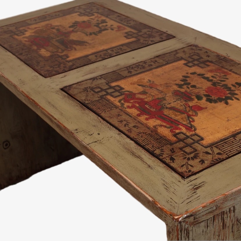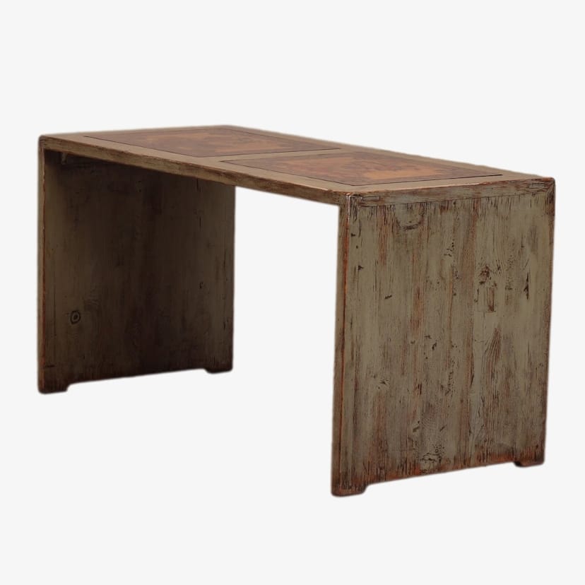 Bureau province de Mongolie avec 2 panneaux décorés. Fabrication artisanale dans le respect des règles de l’art. Laque à dominance de pigment gris.